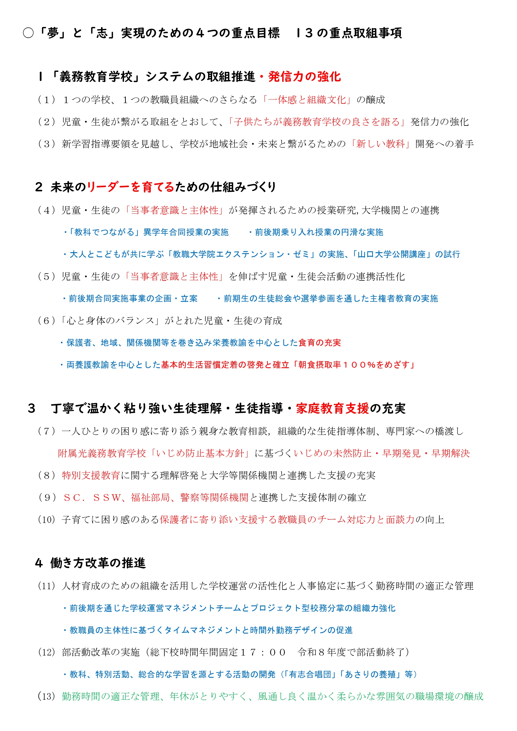郷土を愛し,全人的に調和し「夢と和と力」のみなぎる子ども・21世紀の日本を担う子どもの育成を目指して,次の5本の柱を本校教育の基調とする。